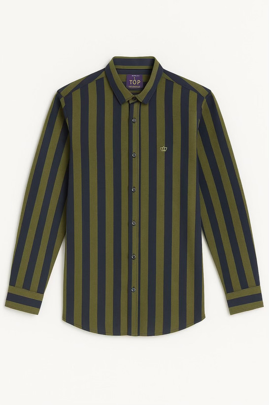 پیراهن مردانه پنبهای راهراه در پنج رنگ شیک و پرطرفدار، مناسب استفاده روزمره و رسمی.