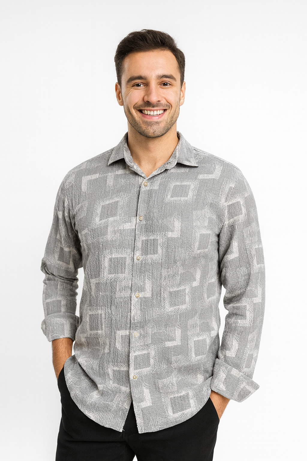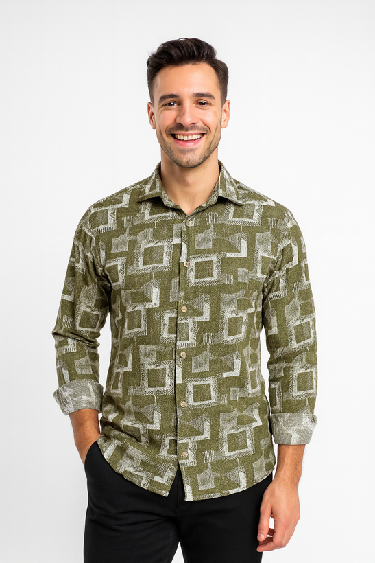 پیراهن مردانه بیسکویتی طرح هندسی | مناسب پاییز و زمستان | سایز M تا XXXL